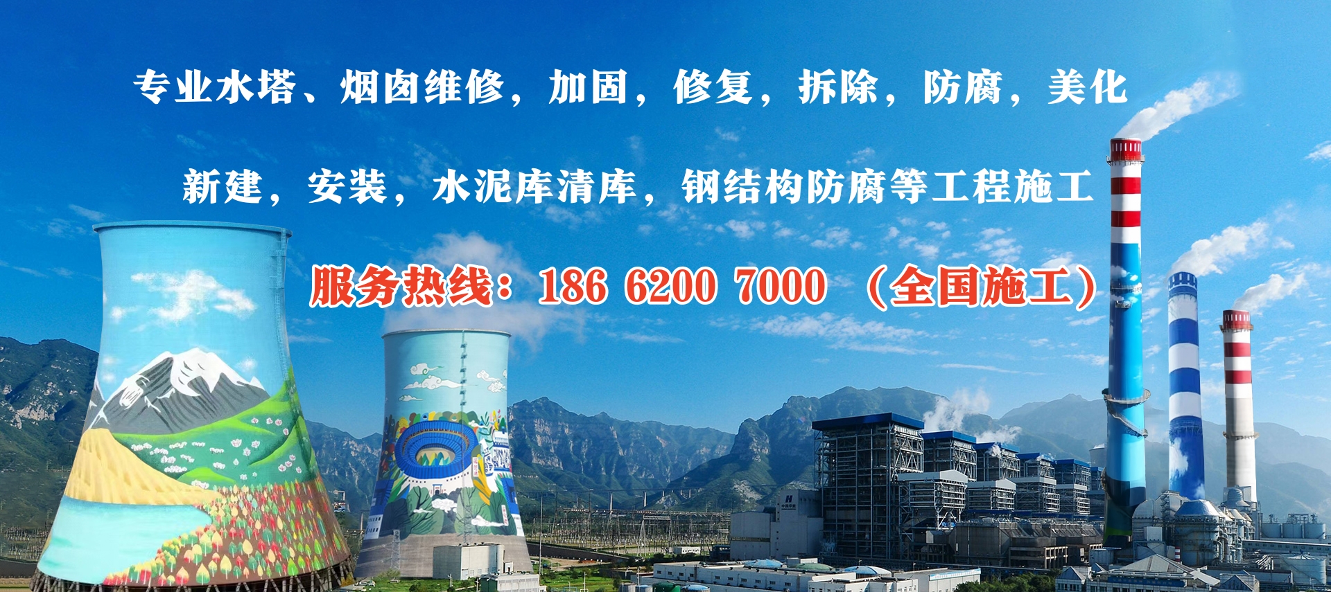 我公司專(zhuān)業(yè)承接各類(lèi)高聳構(gòu)筑物拆除,維修,防腐,美化,改造,新建,安裝,加固,刷新,探傷,檢測(cè),脫硫,保溫,水泥庫(kù)清庫(kù),清灰,污水池防腐,鋼結(jié)構(gòu)除銹防腐,港口防腐,化工廠(chǎng)防腐,電廠(chǎng)爐架防腐等建筑工程施工,歡迎來(lái)電咨詢(xún)!